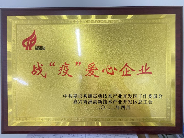 嘉興秀洲國家高新區(qū)授予“戰(zhàn)‘疫’愛心企業(yè)”稱號